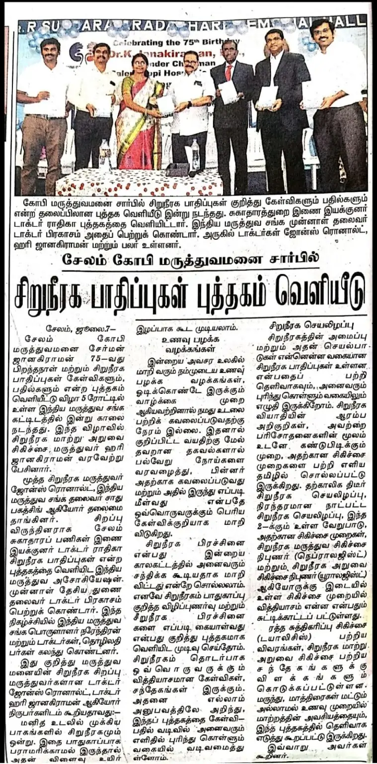 புத்தகத்தைக் கேள்வி – பதில் பாணியிலே எழுதி வெளியிடுவதிலே மிகவும் மகிழ்ச்சியடைகிறோம். இந்தக் காலத்திலே, சிறுநீரக பாதிப்புகள் அதிகமாக ஏற்படுவதை நாங்கள் கண்கூடாகப் பார்த்து வருகிறோம். நீங்களும் அதை உணர்ந்திருக்க வேண்டும். நீரிழிவு நோய், அதிக இரத்த அழுத்தம் போன்றவற்றால் சிறுநீரக வியாதிகள் அதிகமாக ஏற்பட்டாலும் இதற்கான வேறுசில முக்கியமான காரணங்களும் உள்ளன. இவற்றைப்பற்றிய விழிப்புணர்வு நம் அனைவருக்கும் தேவைப்படுகிறது என்பதைக் கருத்தில் கொண்டு, இந்தப் புத்தகம் உருவாக்கப்பட்டுள்ளது. அனைவரும் எளிதில் புரிந்து கொள்வதற்காக, இலகுவான தமிழில், கேள்வி பதில் பாணியில் இதனை வடிவமைத்திருக்கிறோம்.
